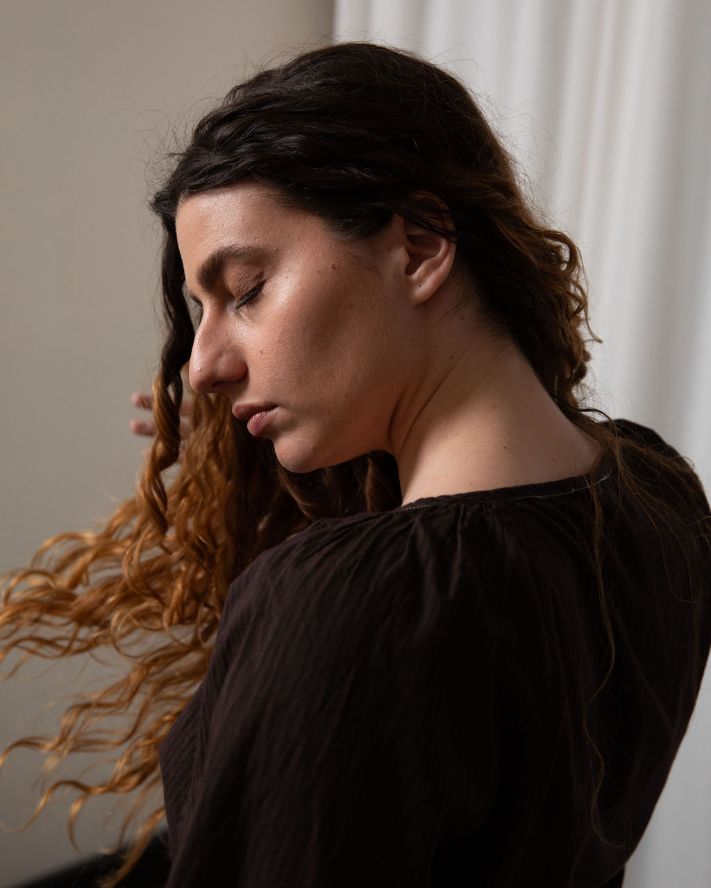 Every Eva Cassis piece is designed to be worn, loved, and treasured for years to come. We work exclusively with natural, certified sustainable fibres — like linen, cotton, and silk — which not only feel beautiful on the body, but also age gracefully when properly cared for.