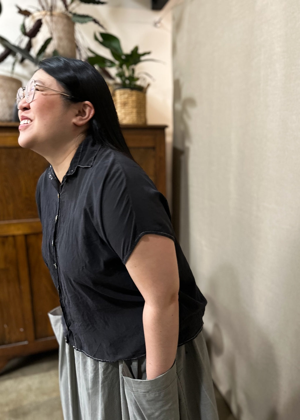 This is slow fashion at its finest. With its relaxed fit and soft drape, the Montana Shirt is both flattering and functional. Whether worn buttoned up, layered open over a dress, or half-tucked into your favourite trousers, it brings effortless elegance to every look.