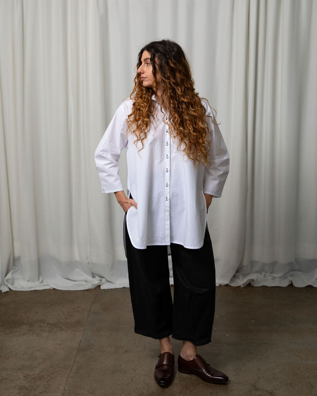 Featuring a cropped wide-leg that architecturally tapers towards the ankle, the Tokyo Trouser is defined by its unique centre-leg dart — an intentional design detail that elongates the leg and creates an interesting artistic line that works across all body shapes. The result is a pant that feels polished, flattering, and endlessly wearable.